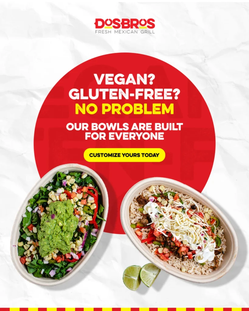 Savor our signature Burrito Bowl at DosBros Fresh Mexican Grill, featuring tender slow-cooked carnitas piled high on a bed of fluffy cilantro-lime .....